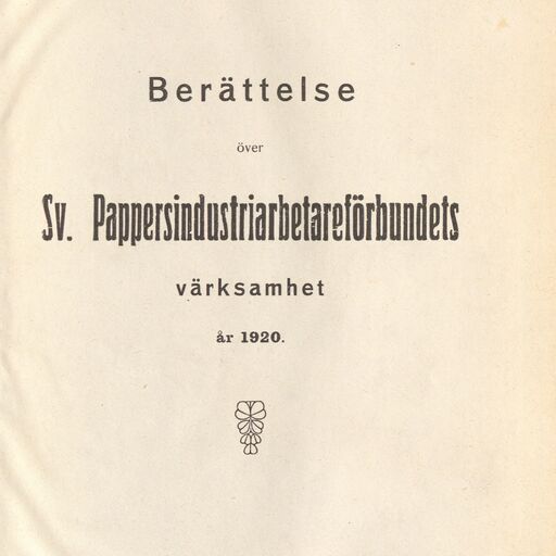 Before 1920, Swedish paper industry workers were organised in Sågverksarbetareförbundet (the Sawmill Workers' Union) and Grov- och fabriksarbetareförbundet (the General and Factory Workers' Union). But on 21 June 1920, at a constituent congress, they formed their own union. The organisation acquired premises in Gävle and G.O. Strand was elected as its first representative. From 1921, it published the magazine Pappersindustriarbetaren (Paper Industry Worker), which ceased publication in 1935 and was replaced by the cartel magazine SIA. The union moved to Stockholm in 1928 and continues to operate as an independent union.